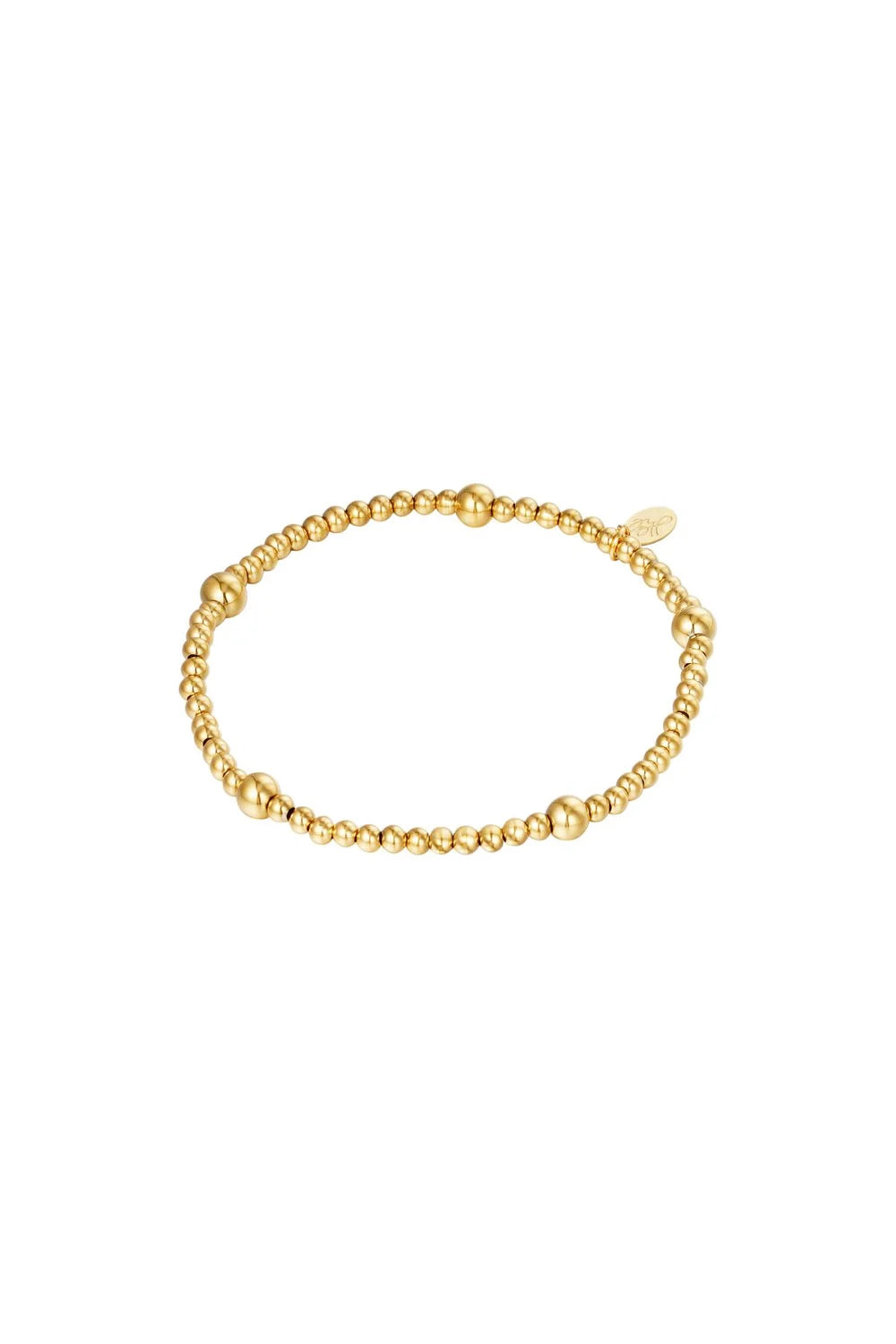 Een elegante, elastische kralenarmband van roestvrij staal. Tijdloos en perfect te combineren met andere armbanden. Je schuift hem eenvouding om je pols, geen gedoe met sluitingen!